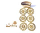 Jute Round Rug |Handwoven | Natural Fiber with White Stripe Design