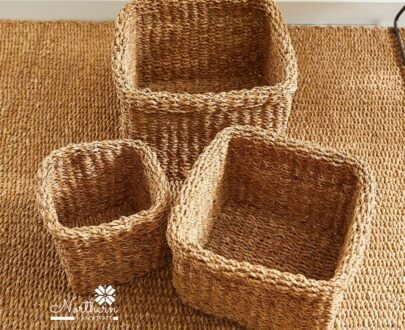 Seagrass Square Baskets With Cuffs, Set Of 3